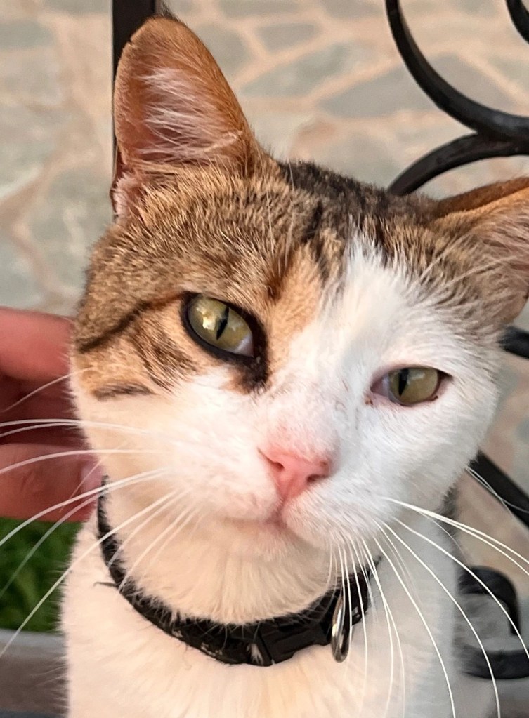 En relación a nuestro estimado felino, destacaré como inciso la abundancia de gatos callejeros en Grecia. Los felinos abundan en este país, de una manera que rara vez he visto en España. Las colonias son ubicuas y, durante este viaje, raro es el día que no nos hemos topado con uno —o varios— de ellos, a los que hemos acariciado y alimentado, con el correspondiente lavado de manos posterior. El gato es un animal especialmente grácil. Sus movimientos son sigilosos, acompasados y elegantes, y sus aires nobles y elitistas. La mayoría de los gatos eran mansos y se dejaban acariciar, aunque aquel de Galaxidi dejó una marca en mi mano, más por inconsciencia que por inquina.