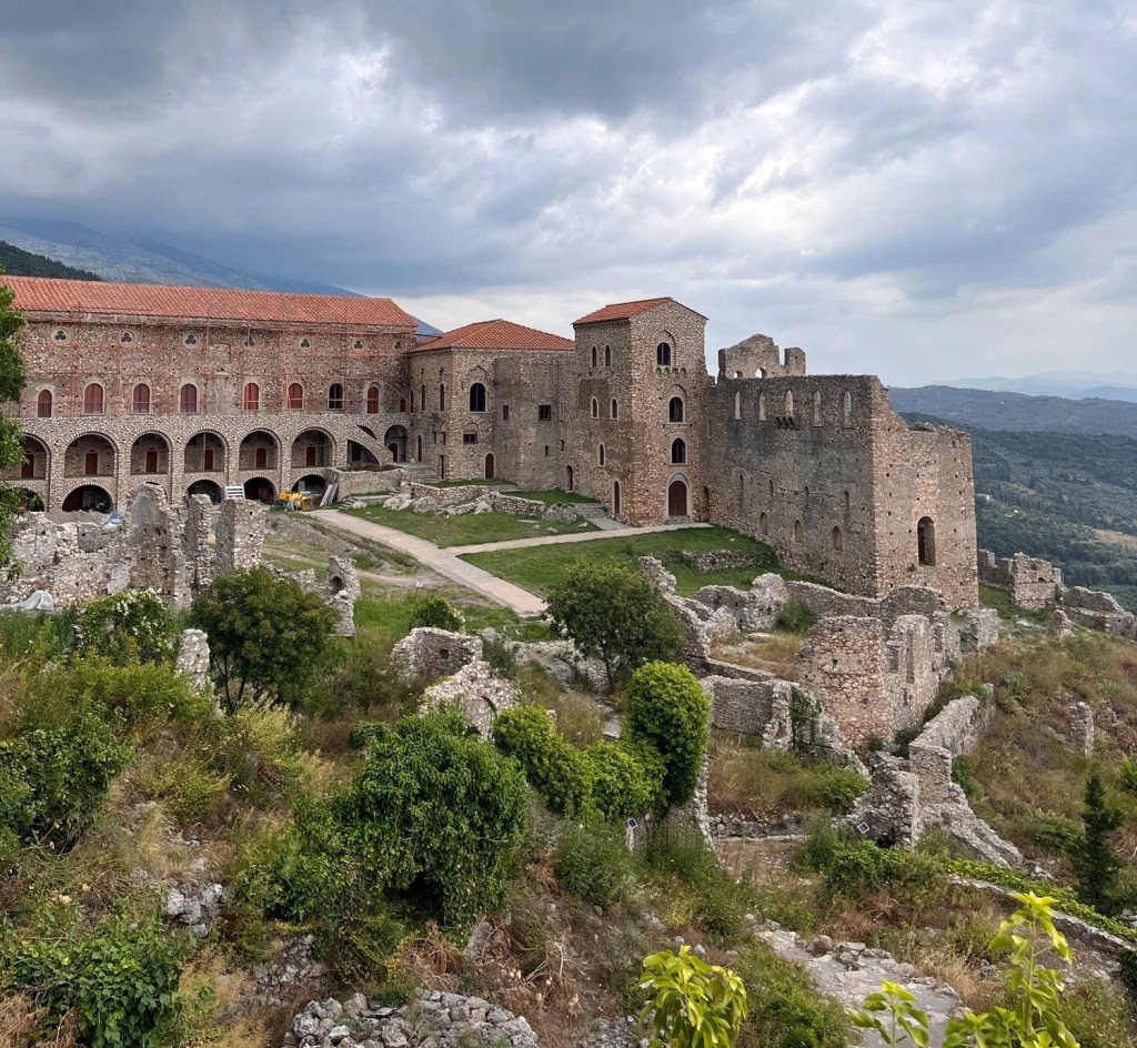 Tal vez por la deuda de un cansancio acumulado que tenía que saldar, o por el motivo que fuera, este día apenas consta en mi memoria. Por tanto, esta será tal vez la más lacónica—con razón— entrada del texto. Recorrimos el camino que separaba Nauplia de Kokkala, una recogida aldea pesquera en la costera este de la península de Mani, la cual sería nuestro refugio durante los dos días sucesivos. Durante la mayor parte del viaje en coche, dormí profundamente. No consta en mi memoria la visita a Esparta, donde almorzamos, aunque las fotografías y los testimonios de mis amigos dan fe de ello. Desperté apenas para almorzar en la Esparta moderna y para una obligada visita a Mystras, las ruinas de una ciudad bizantina, situada en la falda del monte Taigeto —también conocido como Pentadactylos, «el de los cinco dedos» por los bizantinos— desde la que guardaba las vistas de un valle; desde este monte los antiguos espartanos sacrificaban a los recién nacidos que tenían algún defecto de nacimiento y, por tanto, no iban a ser aptos para la disciplina castrense una vez maduraran. El entorno era verde y frondoso, y las ruinas de la ciudad, vastas. Pude encaramarme a lo alto de una antigua muralla derruida y otear a mi alrededor; estaba maravillado con las vistas. Algunas zonas de la fortaleza estaban mejor conservadas que otras, o tal vez restauradas. Entramos en algunas de las capillas que había en pie, pudiendo disfrutar de unos fantásticos frescos, degradados por el paso del tiempo, pero conservando aún detalles importantes de su composición. Mystras fue un centro neurálgico de la cultura bizantina en los últimos —y decadentes— años del Imperio Romano de Oriente, bajo la dinastía de los Paleólogo.